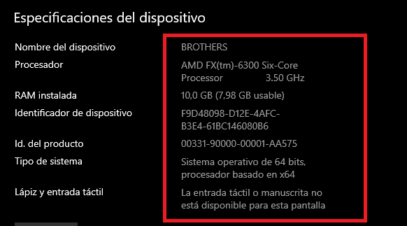 En la imagen de arriba podemos ver el tipo de procesador y cuánta memoria RAM tiene mi computadora.