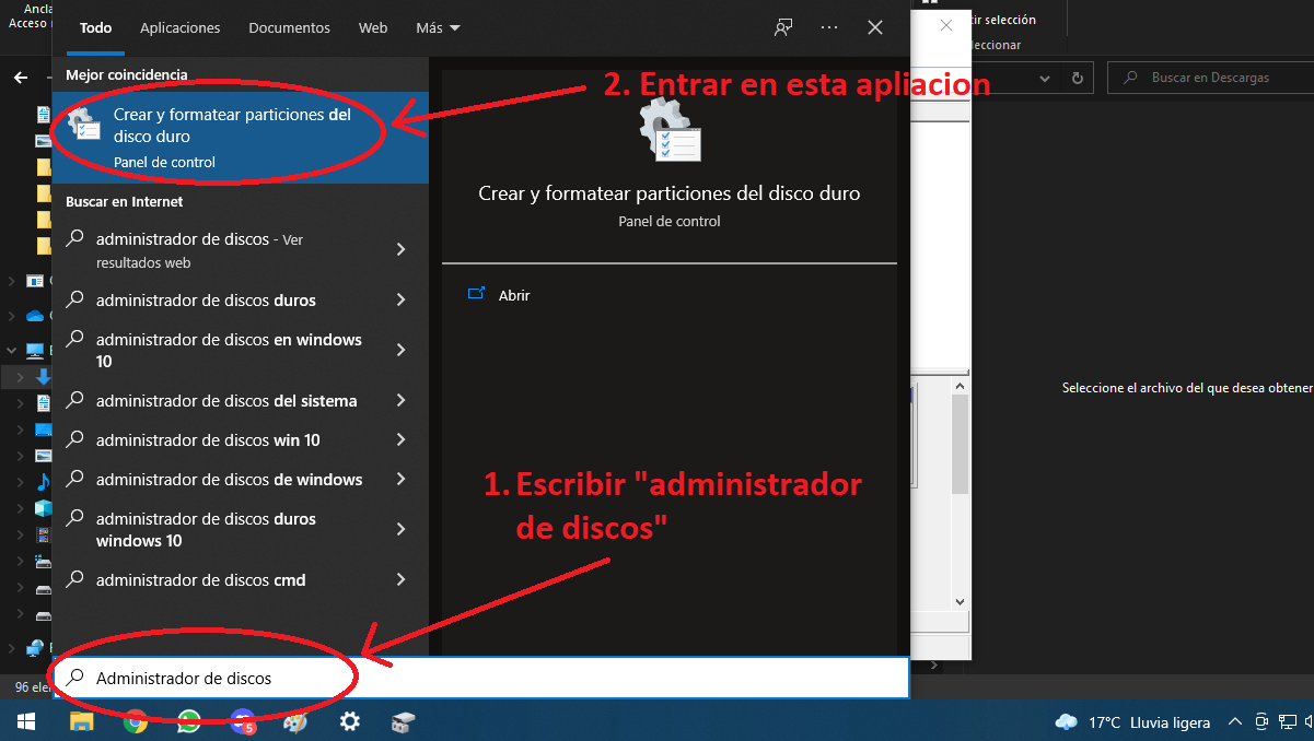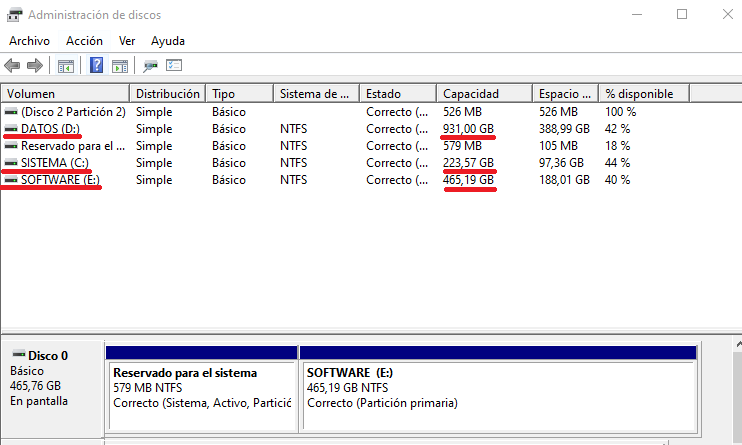 En la lista que tenemos del lado izquierdo podremos observar que los nombres que tengan una letra del lado derecho, como por ejemplo (D: ) o (C: ) son los discos duros que tiene mi computadora. Del lado derecho podemos ver cuánto espacio tiene cada uno.