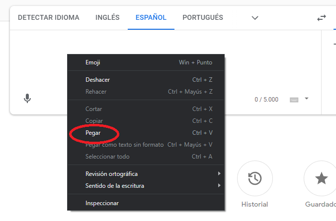Si queremos traducir un texto largo no es necesario escribir el texto, podemos 'copiar y pegar' el texto directamente a la caja de traducción.