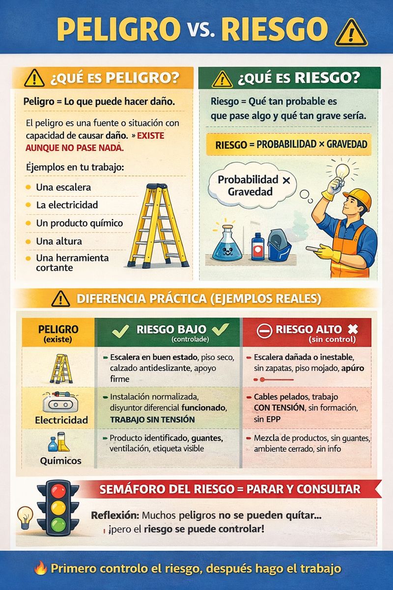 | PELIGRO (existe) | RIESGO BAJO ✅ (controlado) | RIESGO ALTO 🚫 (sin control) |